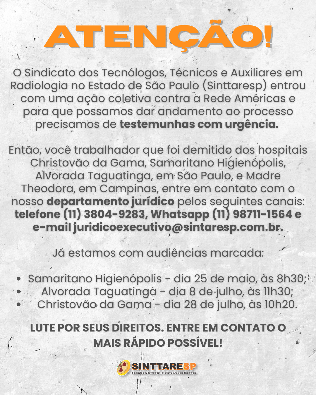 SINTTARESP NA LUTA PELOS DIREITOS DOS TRABALHADORES DA RADIOLOGIA
